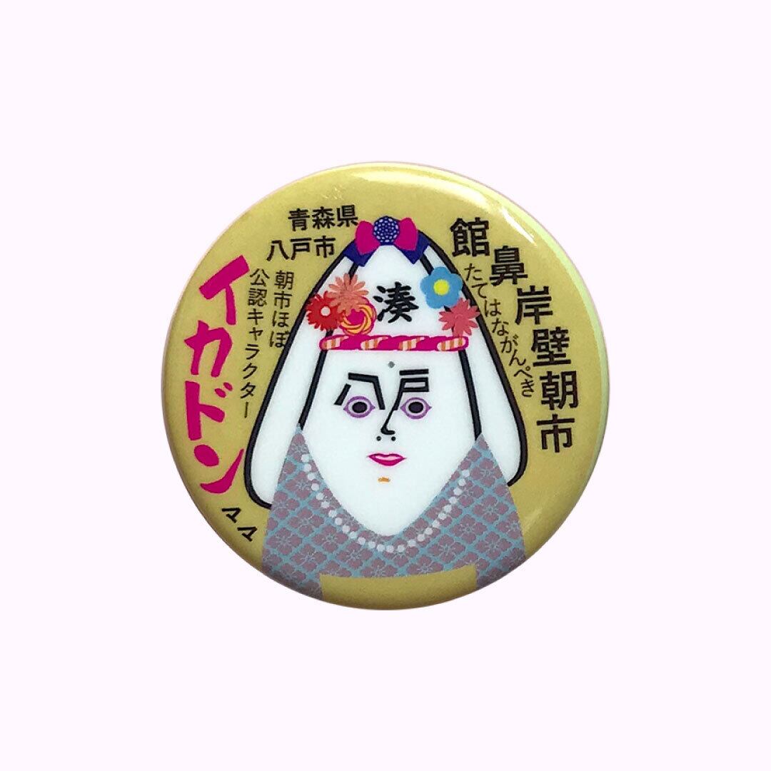 館鼻岸壁朝市で愛されているイカドンの缶バッチです。
